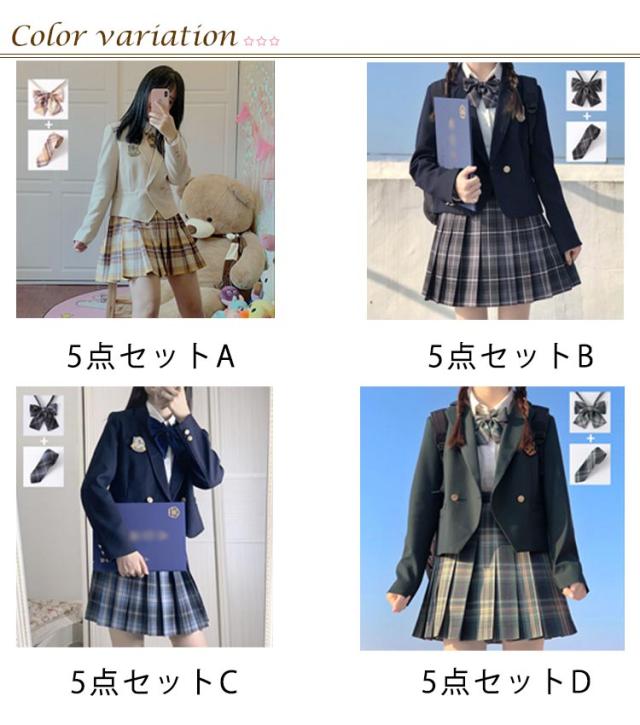 | 選べる7カラー、あらゆるシーンで活躍するJK制服5点セット お得なジャケット+シャツ+スカート+ネクタイ+蝶ネクタイの5点セットです。 質の高いポリエステル素材を採用するので、型崩れにくい動きやすいです。 チェック柄のスカートはどれも派手になりすぎない落ち着きのある上品な色合い。 格好よいシルエットを演出する。全体的にスタイルアップ出来るオシャレな1着です。 豊富なチェック柄スカート選択可能で、楽に履いていただけます。 卒入学式、発表会、ちょっとしたお出かけや、コスプレまでオールマイティーに使えるスーツセット。 | |