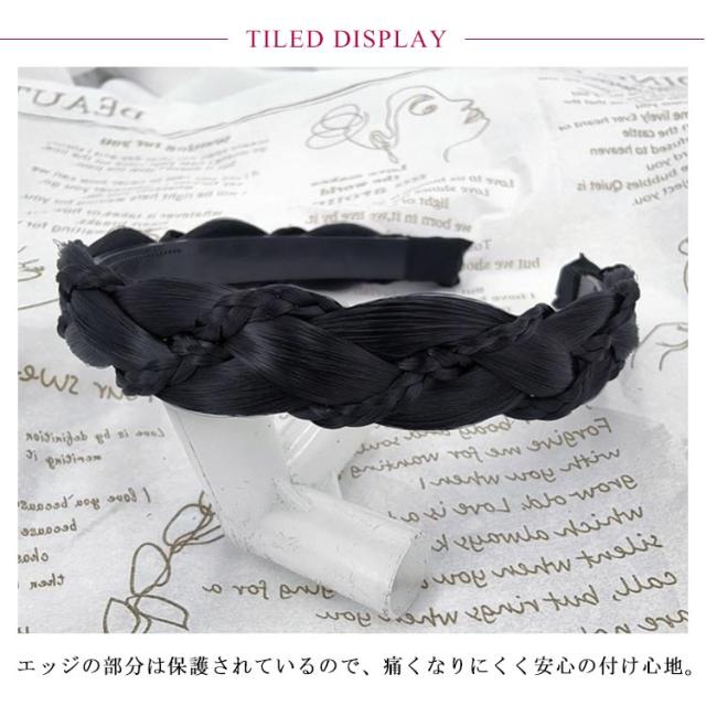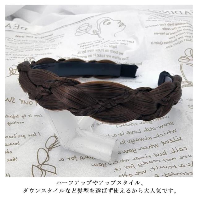 | 存在感のある太めのサイズ感で、いつもの髪型もつけるだけでぐっとオシャレに仕上げる三つ編みカチューシャ。 エッジの部分は保護されているので、痛くなりにくく安心の付け心地。 ズレを防止するコーム付きなので、ヘアアレンジが崩れにくいのも嬉しい。 ハーフアップやアップスタイル、ダウンスタイルなど髪型を選ばず使えるから大人気です。 髪の毛が短くても使える三つ編みカチューシャは結婚式やパーティーにもオススメ。 | |
