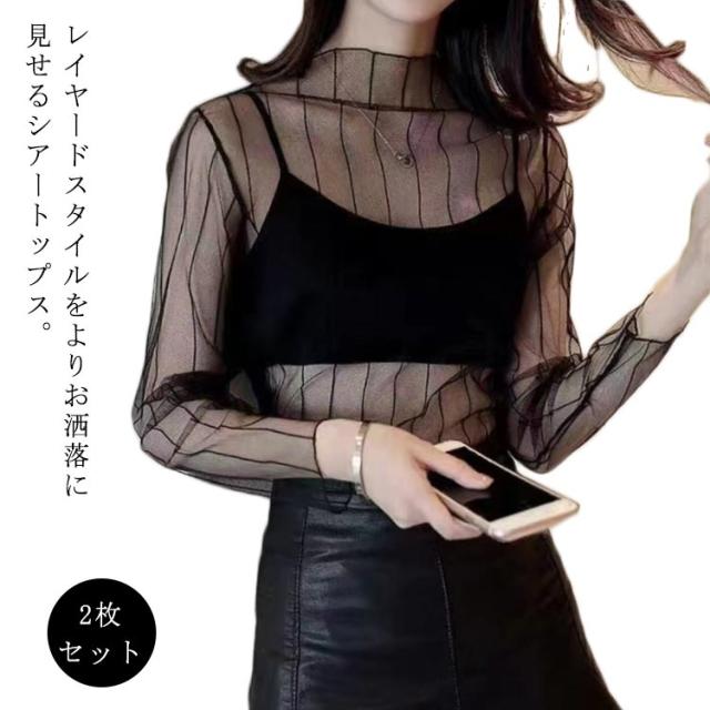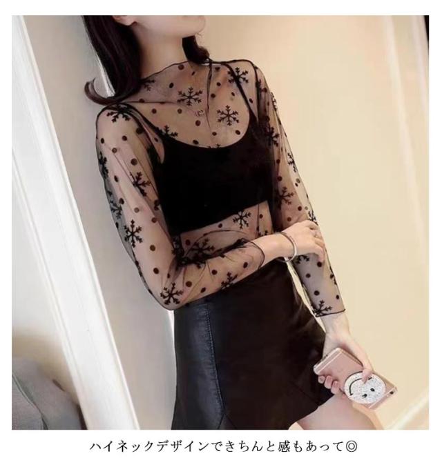 2枚セット レースインナー インース レディース チュール 透け感 花柄 シースルー インナー 伸縮性 透け 薄い セクシー 春 秋 夏 冬 ハイネック タートルネック レース インナー