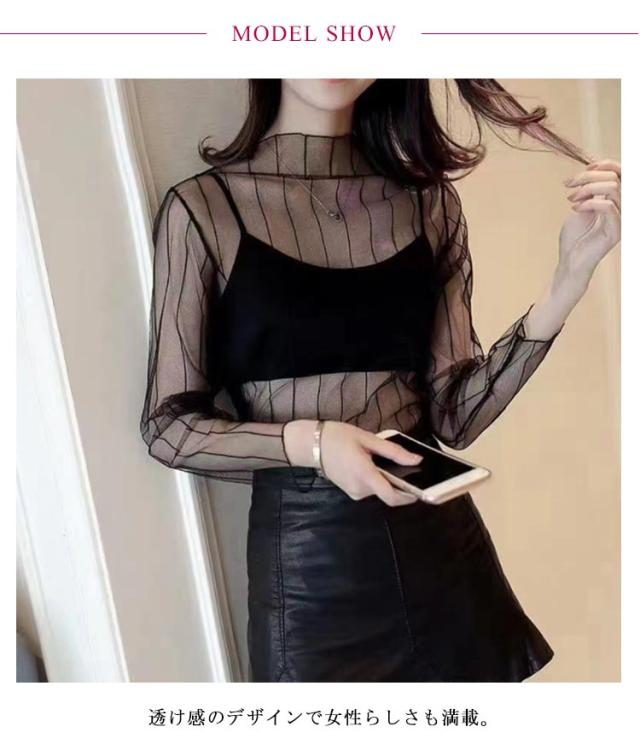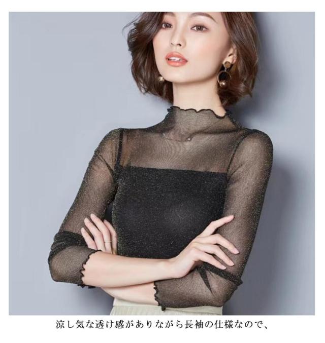 | レイヤードスタイルをよりお洒落に見せるシアートップス。 透け感のデザインで女性らしさも満載。 柔らかい触り心地でストレスフリーにご着用頂けます。 涼し気な透け感がありながら長袖の仕様なので、 肌寒い時期のレイヤードはもちろん夏服や冬服からのシフトチェンジにも活躍する1枚。 ハイネックデザインできちんと感もあって◎ これからのインナーにオススメのアイテム。 | |