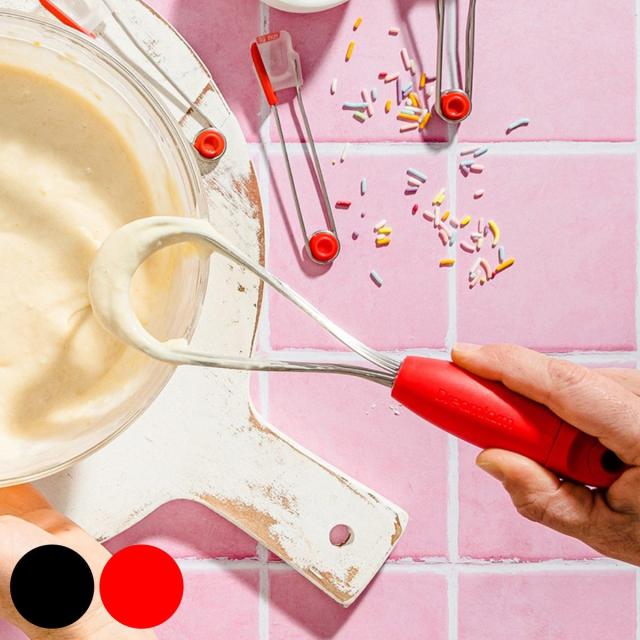 《 LH10427 キッチン雑貨 キッチングッズ ステンレス製泡立て器 キッチン便利グッズ おすすめ オススメ 役立つ 食洗機使える お洒落 おしゃれ オシャレ 下ごしらえ用品 疲れにくい 混ぜやすい 泡立て 泡だて ケーキ作り 折りたためる 折り畳める 折り畳み 省スペース 収納 生クリーム ホイップクリーム ソース 黒 赤 》