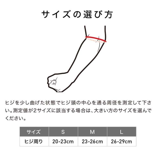 | サイズ | S, M, L (ヒジ周り/cm) S:20〜23 M:23〜26 L:26〜29 |