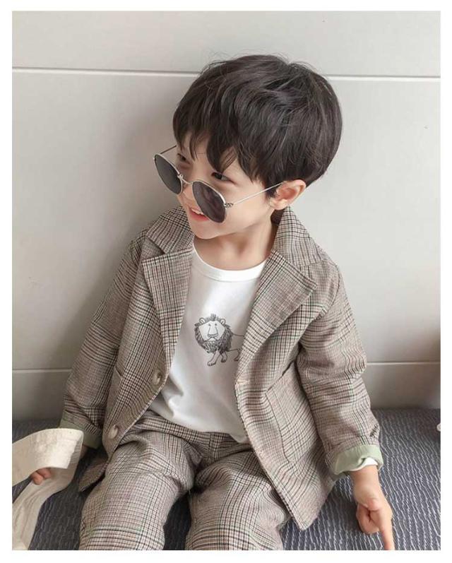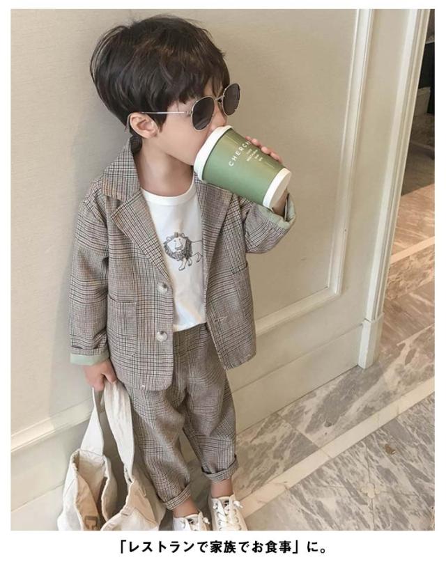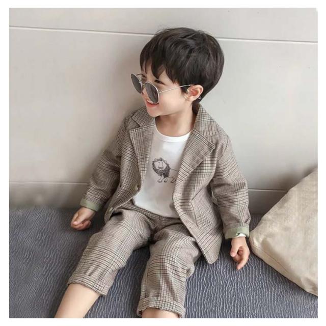 子供スーツ 男の子フォーマルスーツ 2点セット ボーイズ 子どもスーツ チェック柄 ベビー服 七五三 入園式 卒業式 入学式 卒業式 結婚式 発表会 お宮参り 誕生日 演奏会 お呼ばれ ブラウン ベージュ 90 100 110 120 130 140 送料無料