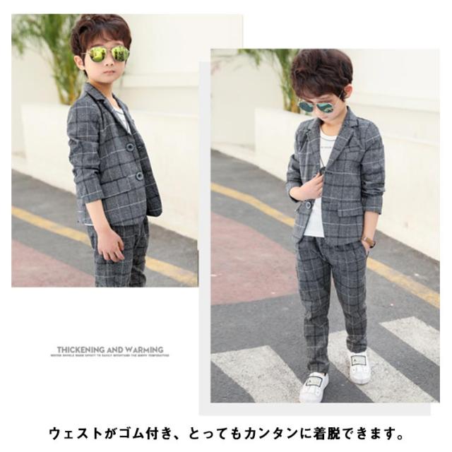 入学式 スーツ 男の子 2点セット ゆったり 子供スーツ キッズ 通園 子供 入学式 スーツ 卒業式 入園 男の子 フォーマル 子供服 卒園式 発表会 七五三 入学式 スーツ 男の子 おしゃれ グレー チェック柄 送料無料