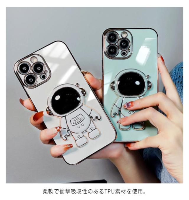 iphone13 pro 11 max 宇宙飛行士 スタンド付き 可愛い iphone12ケース おしゃれ max pro XR 韓国 かわいい スマホケース pro ケース レンズカバー メッキ加工 背面 耐衝撃 キラキラ 横向き 縦向き 送料無料