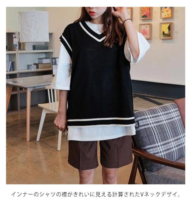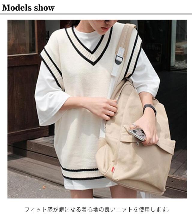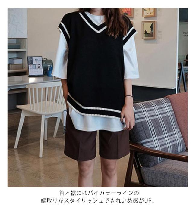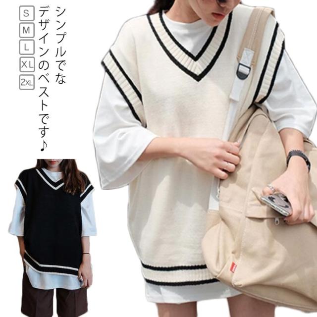 スクールベスト ライン入り ニットベスト 制服 学校 高校生 中学生 通学 イベント 重ね着 レイヤード トップス レディース メンズ ゆったり ユニセックス お洒落 送料無料