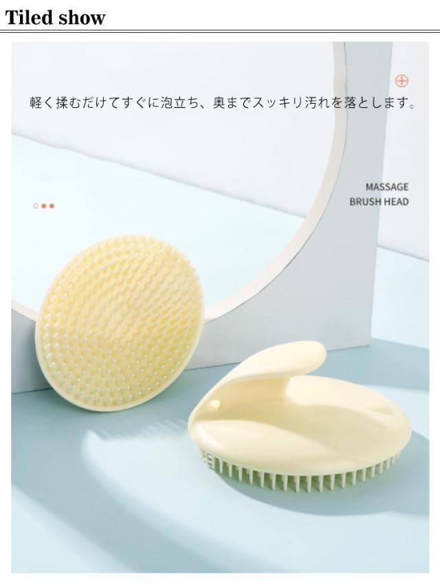 | シャンプーブラシ用と頭皮マッサージ用として両用できる頭皮ブラシです。 髪の根元までしっかり接触することによって、手洗いよりもやさしく隅々までしっかりと洗えます。 ソフトな肌当たりのシリコン素材なので、頭皮を傷つけることなく。 洗髪時以外でも、乾いた髪の状態で頭皮マッサージ用としてもお使いいただけます。 大きい手にも小さい手にもフィットする形状になっております。 軽く揉むだけてすぐに泡立ち、奥までスッキリ汚れを落とします。 | |