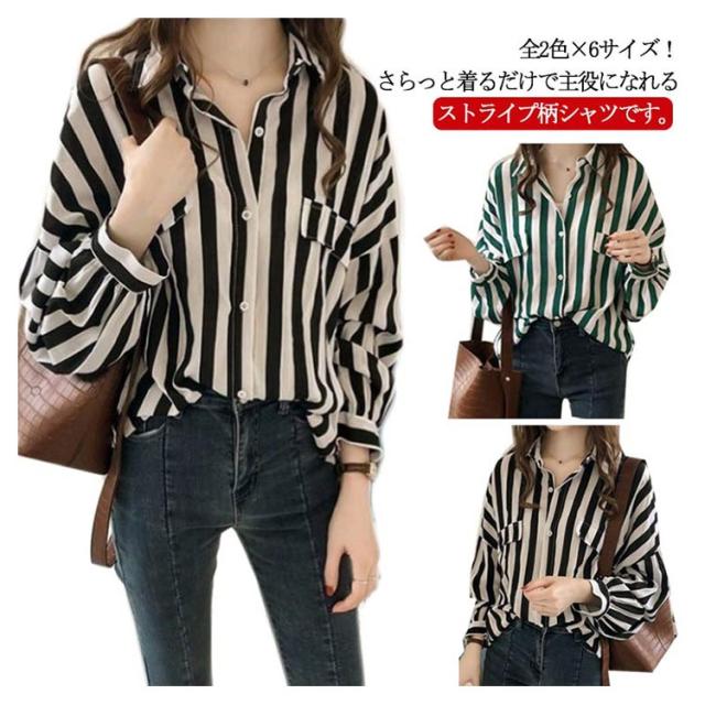 シャツ ブラウス ビッグシルエット 送料無料 シャツブラウス ストライプシャツ 長袖 レディース トップス カジュアルシャツ ゆったり 大きサイズ 春 夏 秋 柄物 おしゃれ ストライプ柄 M L XL 2XL 3XL 4XL