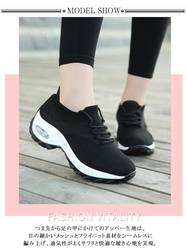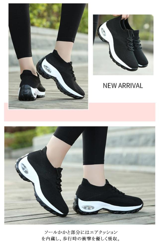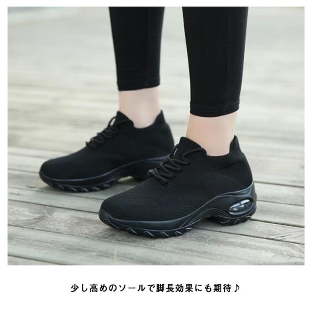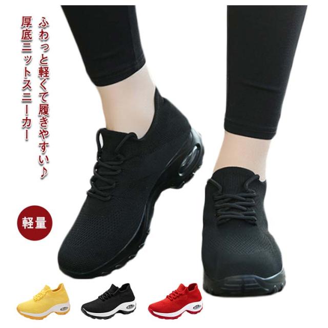 ニットスニーカー 厚底 レディース 運動靴 ランニングシューズ スニーカー スポーツシューズ メッシュ 通気性 衝撃吸収 軽量 大人カジュアル 学生 通勤 通学 おしゃれ 無地 全8色