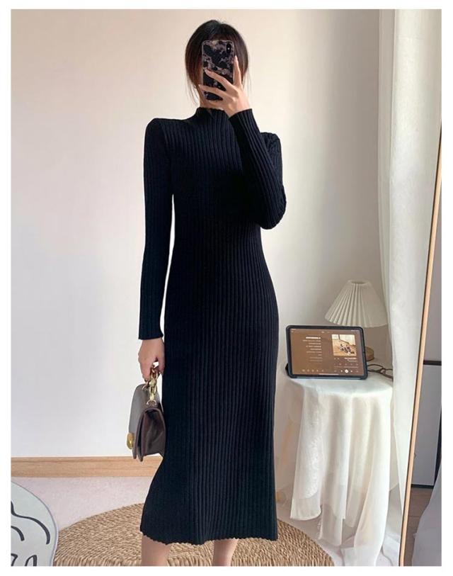 タイトワンピース 選べる丈 ハイネック ニットワンピース ロングワンピース おしゃれ ロング丈 ミニ丈 ミモレ丈 ショット丈 ニット ワンピース 長袖 春 秋 冬 大人 フェミニン 着痩せ ストレッチ S M L XL 2XL
