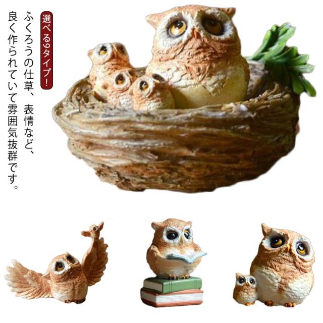 | ふくろうの仕草、表情など、良く作られていて雰囲気抜群です。選べる9タイプ! ちょっとしたお部屋のアクセントに、玄関やガーデニングの置物として 細部まで拘った作りで本物趣向の方にも満足出来る世界を演出しています。 | |