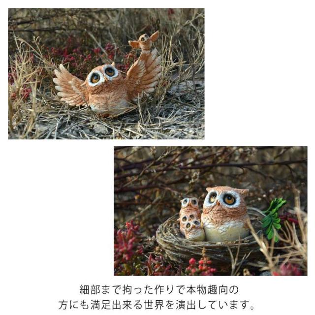 送料無料 フクロウの置物 縁起物 可愛いふくろうファミリー 置物 動物オーナメント ガーデン オブジェ フィギュア ガーデニング インテリア 玄関先 庭 雑貨 フクロウグッズ オーナメント 装飾 ディスプレイ 風水 縁起 モチーフ とり 鳥 トリ バード オウル