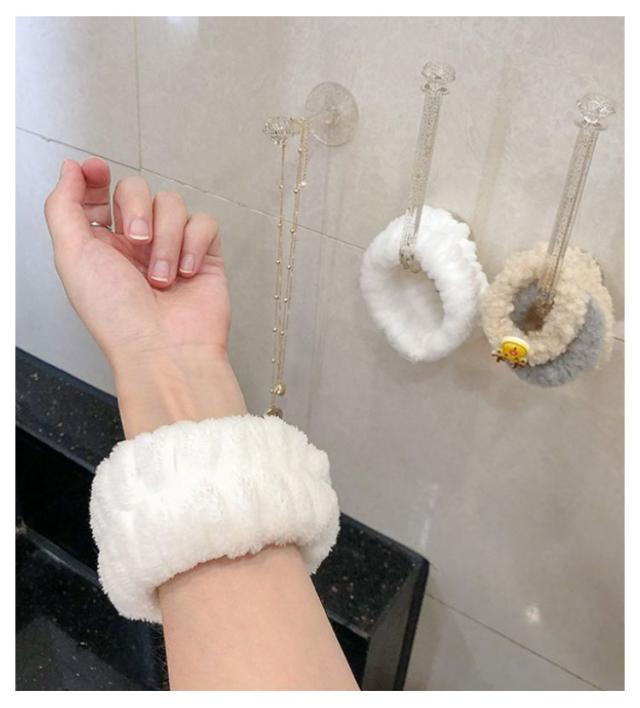 リストバンド 吸水 3ペアセット 洗顔 もこもこ 袖濡れ防止 服濡れ防止 吸水タオル 可愛い 髪 まとめる お風呂上がり メイク 入浴 大人 子供 ふんわり かわいい フリーサイズ ストレッチ 無地 コンパクト 7.5*5cm 送料無料