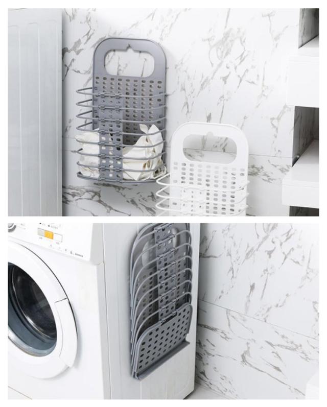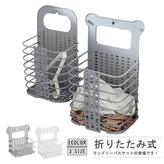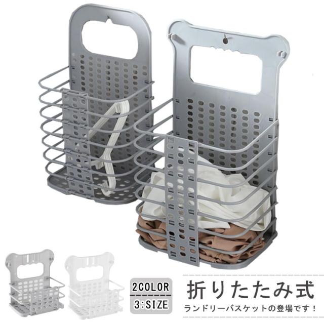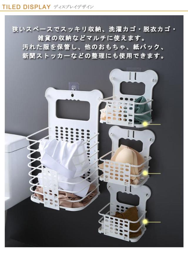 場所も取らず、省スペース!壁掛け ランドリーバスケット 送料無料 折りたたみ 洗濯かご 衣類 収納ボックス 洗濯ボックス 持ち運びやすい ランドリー バスケット 収納バスケット ランドリー収納 収納バスケット インテリア 雑貨 トイレ収納 フック付き