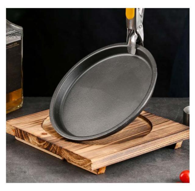 ステーキ皿 大判 魚焼き グリル IH対応 楕円形 木台付き 家庭 鉄板 焼そば ガス火 ハンバーグ 皿 お皿 鉄鋳物製 ステーキ プレート 鉄板 料理 調理 レストラン ステーキ調理器具 安い 業務用