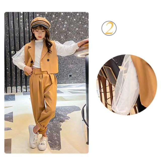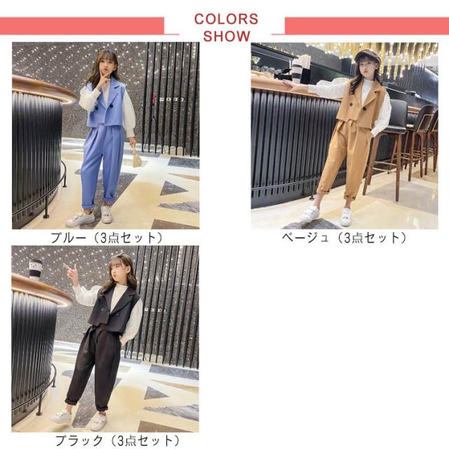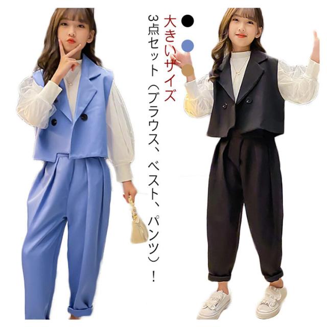 卒業式 スーツ パンツスーツ 女の子 フォーマルスーツ 3点セット ベスト ブラウス 長袖 パンツ 子供服 子供スーツ 小学生 卒服 ゆったり 大きいザイズ カジュアル 無地 おしゃれ 春 秋 入学 卒業 卒園 入園 発表会 七五三 結婚式 記念 お受験 送料無料