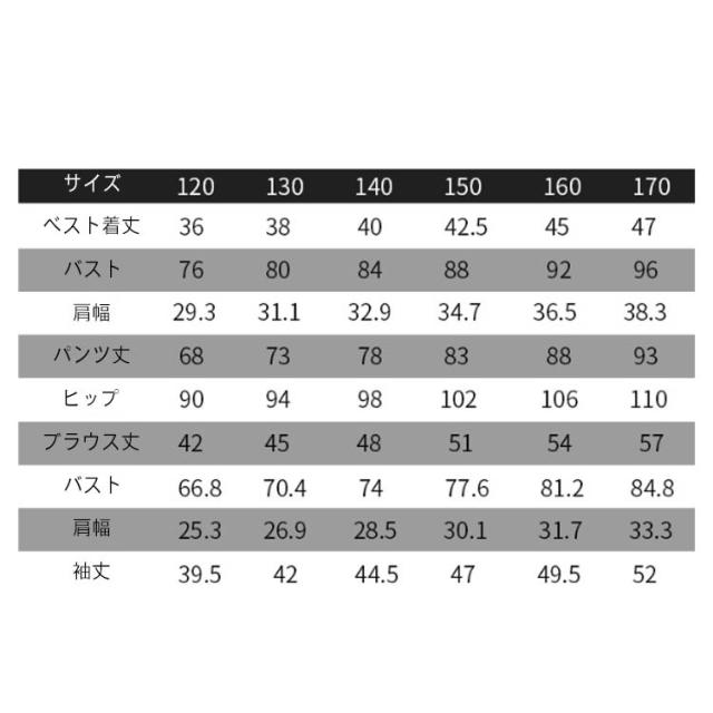 | 3点セット(ブラウス、ベスト、パンツ)! 落ち感のある、イージーケア性にも優れた綿とポリエステル素材を使用しています。さらりとした肌触りが特徴です。 セットアップコーデでスタイリッシュに見せるのはもちろん、それぞれ単体使いも可能。 入園・入学だけでなく結婚式や発表会など、華やかなシーンに活躍するセット。 | |