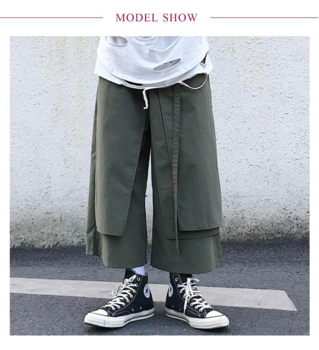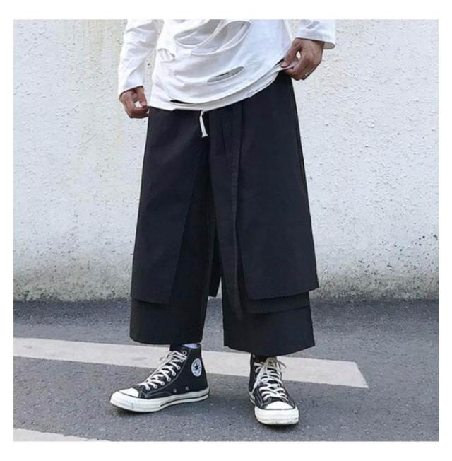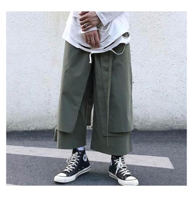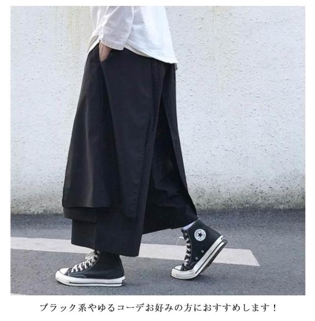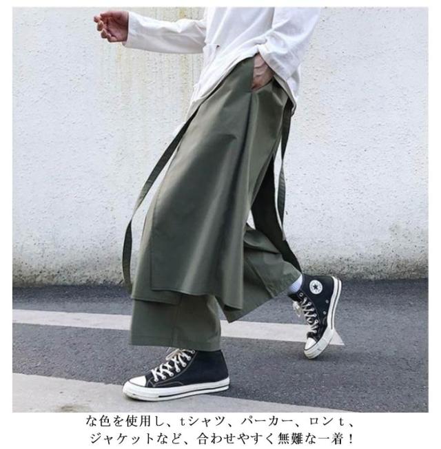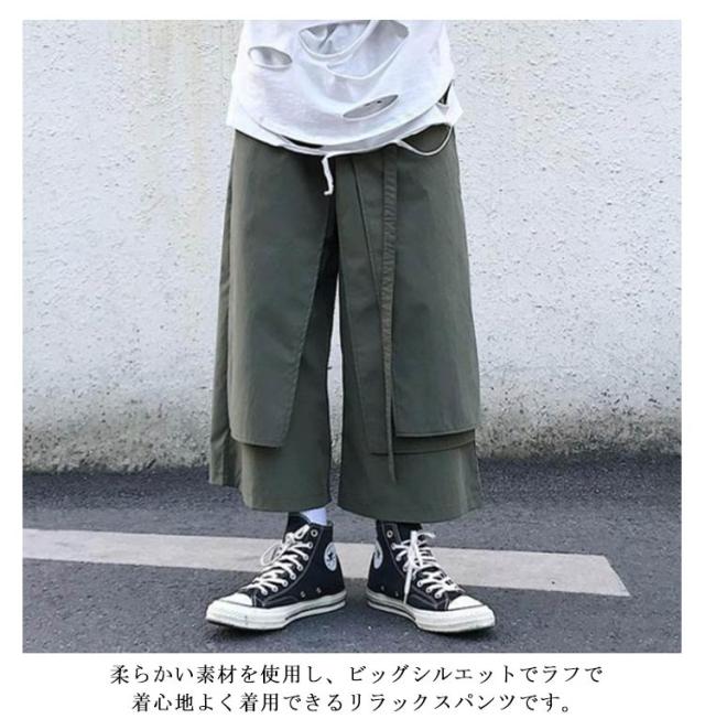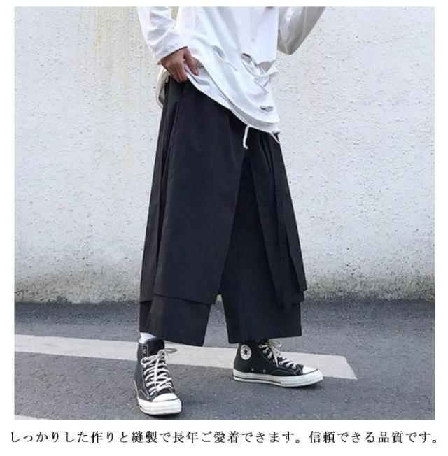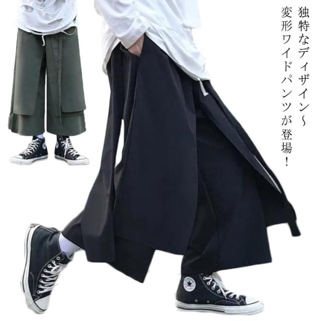 メンズ サルエルパンツ ワイドパンツ 変形 ガウチョパンツ 巻きドレープ ゆったり 袴パンツ ウエストゴム リラックスパンツ ロング丈 無地 オールシーズン オーバーサイズ 個性的 オリジナル