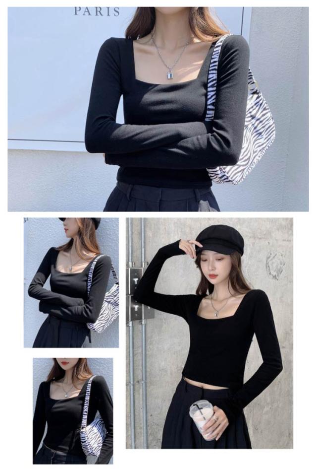 送料無料 Tシャツ レディース スクエアネック 春秋 カットソー 長袖Tシャツ へそ出し 着痩せ ショート丈 タイト 着回し tシャツ スリム 無地 シンプル 大人 カジュアル 韓国ファッション トップス お出かけ