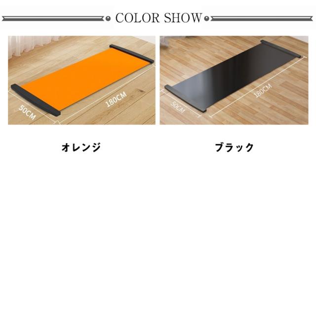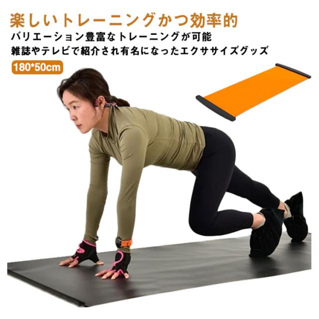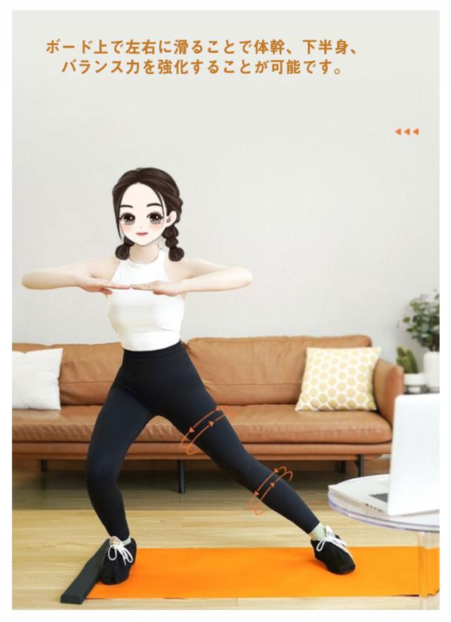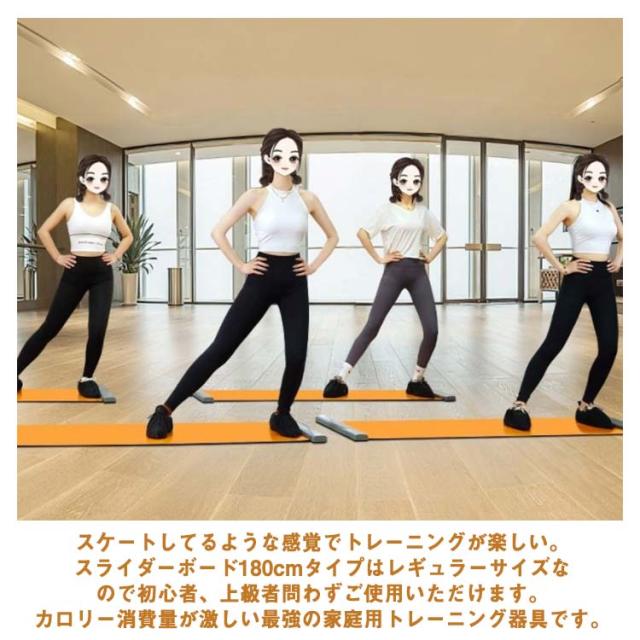 | 【雑誌やテレビで紹介され有名になったエクササイズグッズ】 スライディングボードの表面はPP材質で滑りやすいようになっています。 ボード上で左右に滑ることで体幹、下半身、バランス力を強化することが可能です。 【楽しいトレーニングかつ効率的】 スケートしてるような感覚でトレーニングが楽しい。スライダーボード180cmタイプはレギュラーサイズなので初心者、上級者問わずご使用いただけます。カロリー消費量が激しい最強の家庭用トレーニング器具です。 【バリエーション豊富なトレーニングが可能】 左右にスライディングする以外に様々な種類のトレーニングが可能。 各種トレーニング方法についてはユーチューブなどを参考にしてください。使用方法や様々なトレーニング方法を知ることが出来ます。 | |