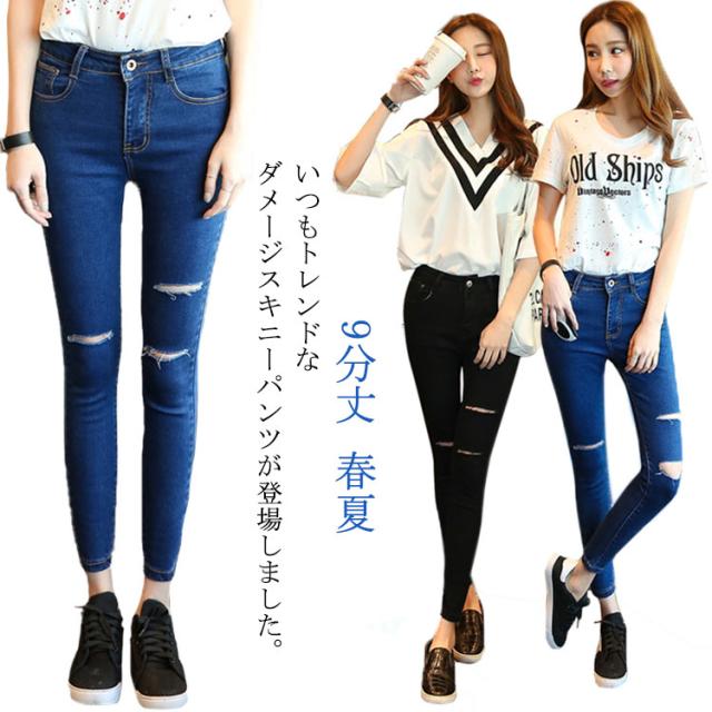スキニーパンツ ダメージジーンズ スキニージーンズ デニム ダメージ ダメージデニム レディース スキニー パンツ スキニーデニム デニムパンツ スキニー 9分丈 春夏 小さいサイズ 大きサイズ 送料無料