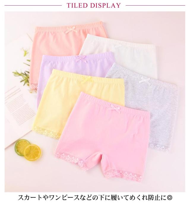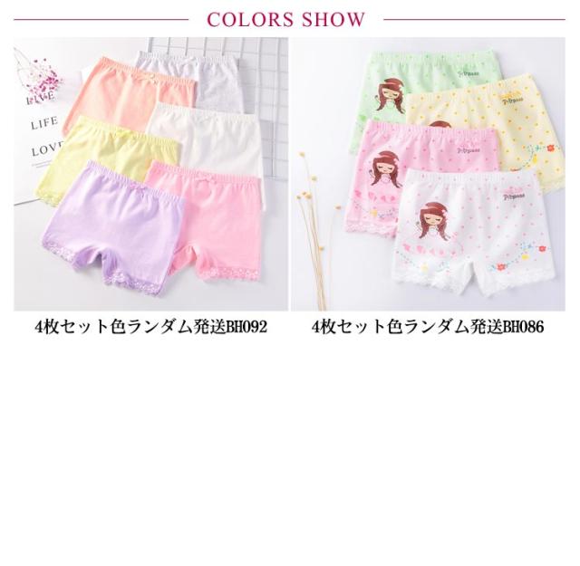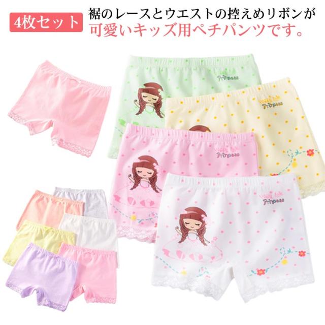 4枚セット キッズ インナーパンツ ペチパンツ 薄手 ペチコートパンツ ショートパンツ 子供用 見せパン 安全パンツ 安全ショーツ 裾レース 女の子 女児 下着 肌着 ジュニア