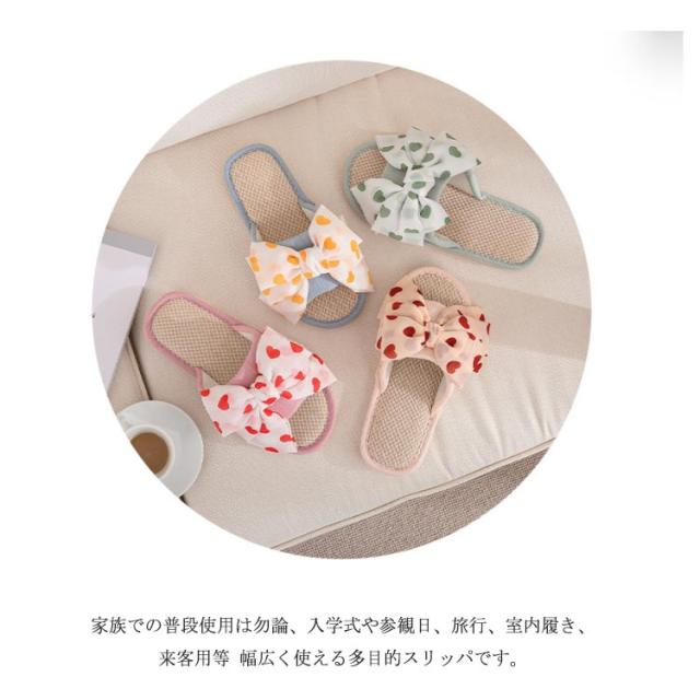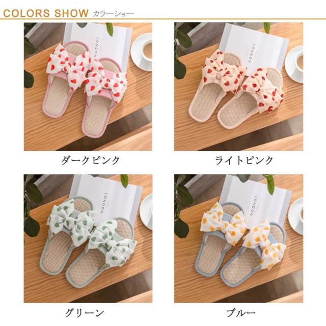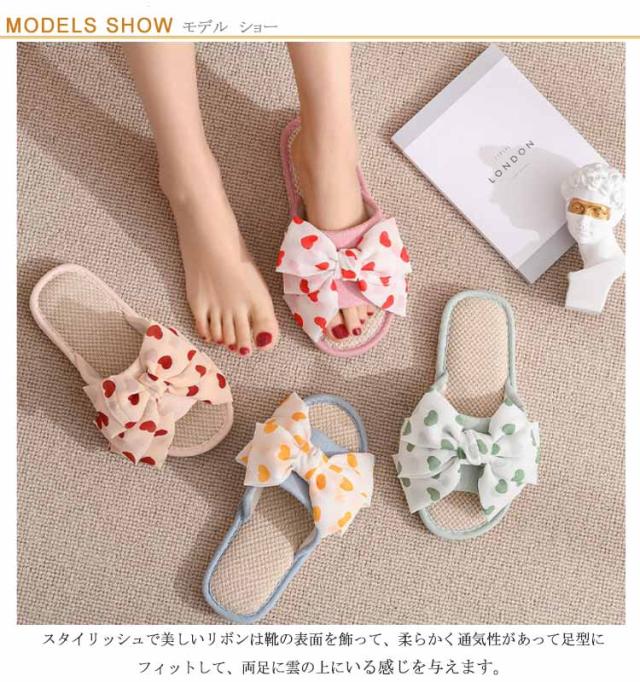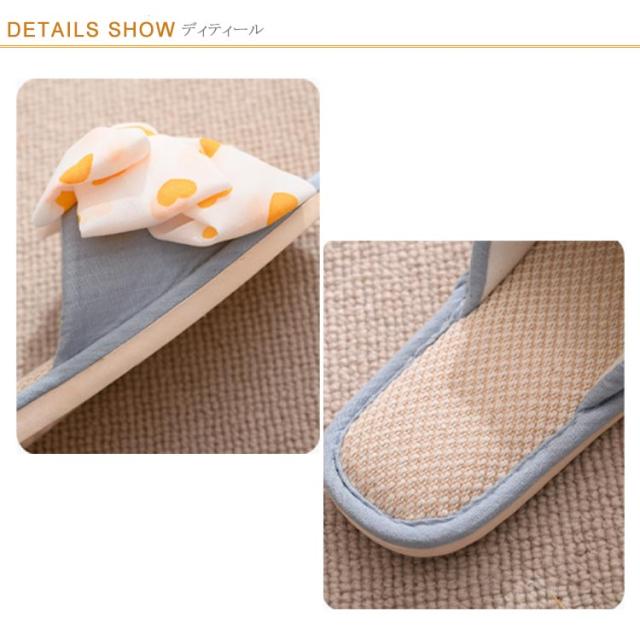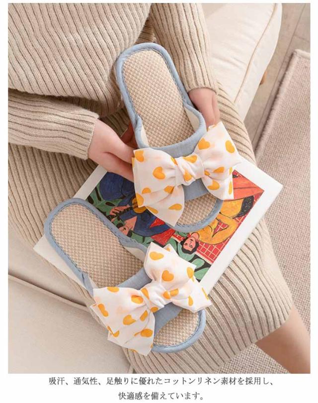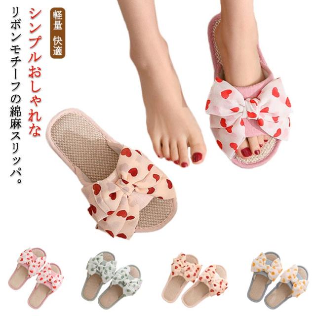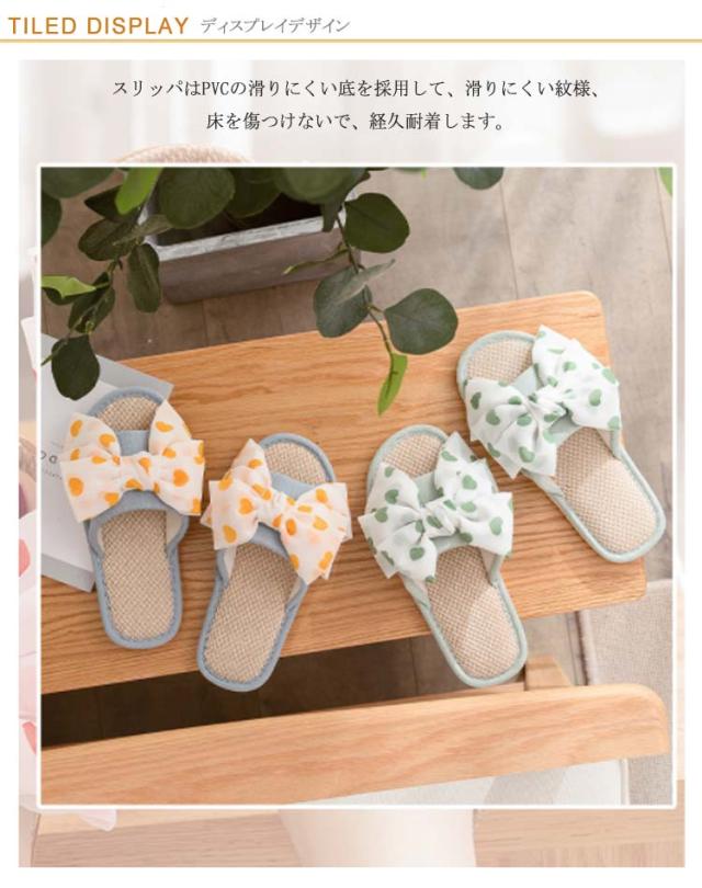 ルームシューズ スリッパ 送料無料 夏用 室内 麻 前開き リネン レディース リボン 水玉柄 リネンスリッパ 消音 軽量 滑りにくい 来客用 インテリア雑貨 オールシーズン 和風 快適 室内静音 履きやすい おしゃれ かわいい 健康スリッパ 蒸れにくい