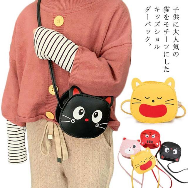 送料無料 ショルダーバッグ 子供用 アニマル 猫 キャット 動物 バッグ キッズ 男の子 女の子 かばん 肩掛け 斜めがけ ショルダーポーチ ガジェットポーチ 携帯ケース ポシェット財布 通園バック かばん 鞄