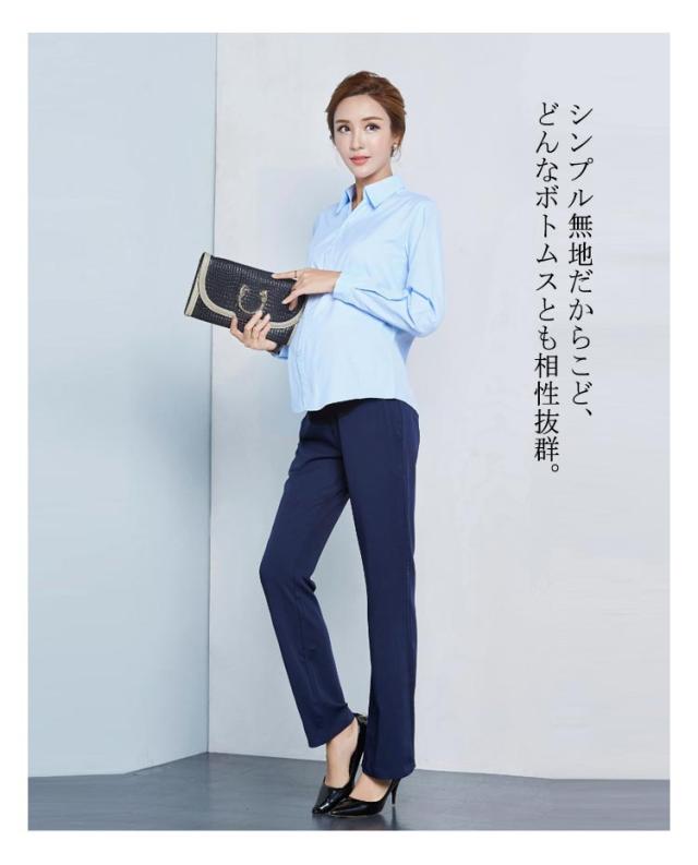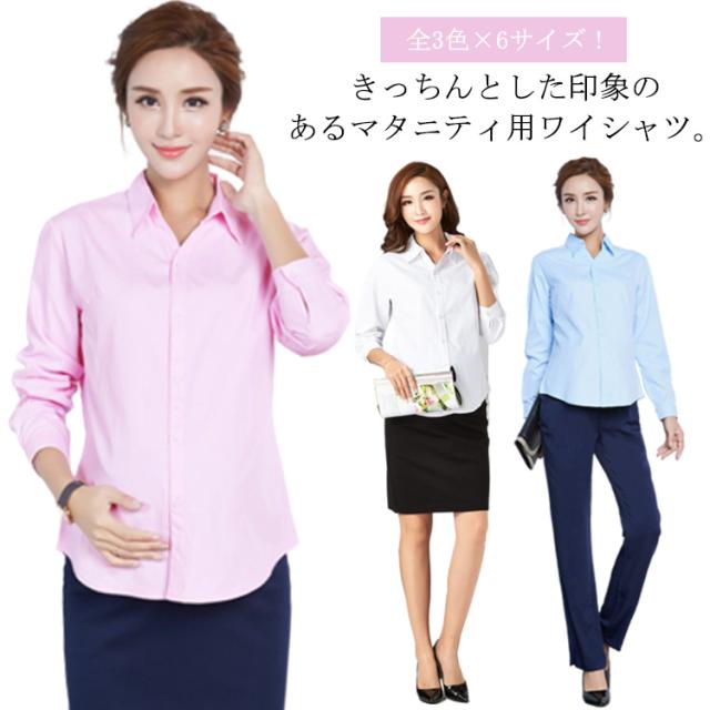 白シャツ マタニティ服 ワイシャツ 送料無料 マタニティシャツ マタニティウエア トップス シャツ ブラウス フォーマル 通勤 白 ホワイト 長袖 シンプル 産前産後 OL オフィス 無地 送料無料 ブルー ホワイト ピンク