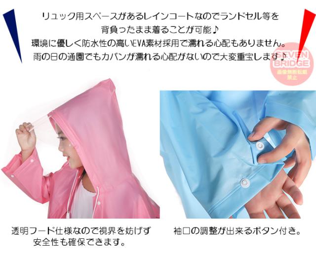 レインコート 子供 ランドセル対応 収納バッグ付 男女兼用 キッズ 女の子 男の子 雨具 防水 カッパ 通園 通学 h0478