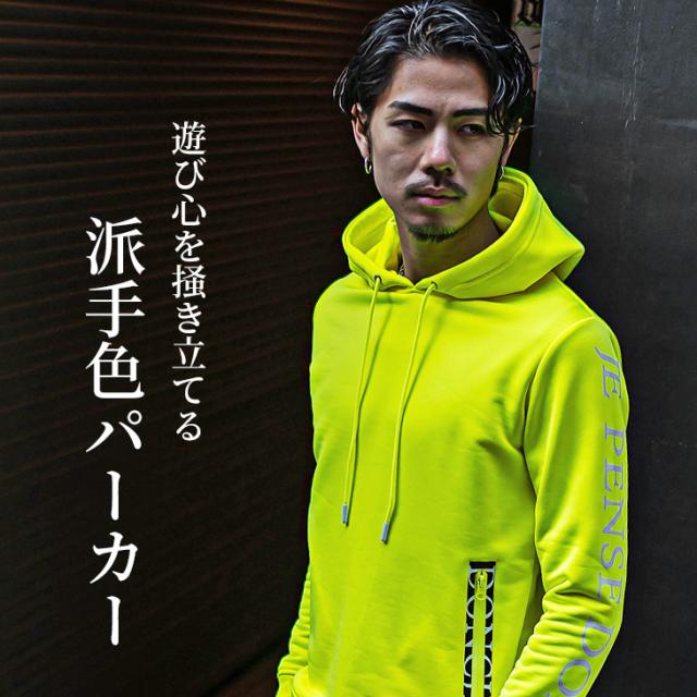 パーカー メンズ 薄手 パーカー ブランド プルオーバーパーカー プルパーカー 長袖 スウェット ロゴスウェット フーディー ネオンカラー 服 蛍光色 イエロー ピンク 大きいサイズ LL XL お兄系 オラオラ系 ちょいワル 夏服 夏 夏新作 新作
