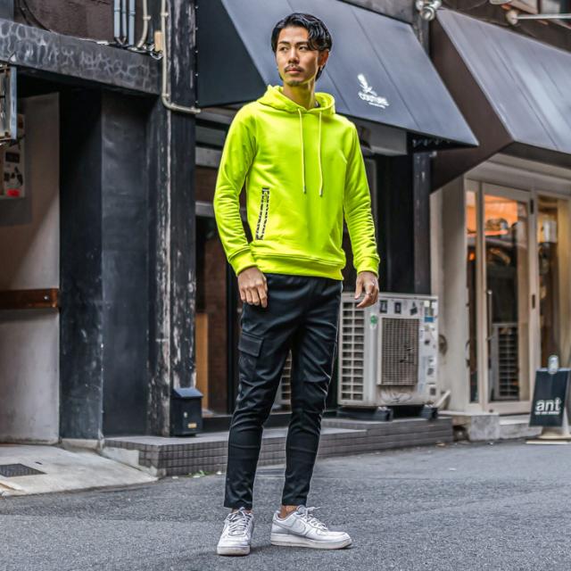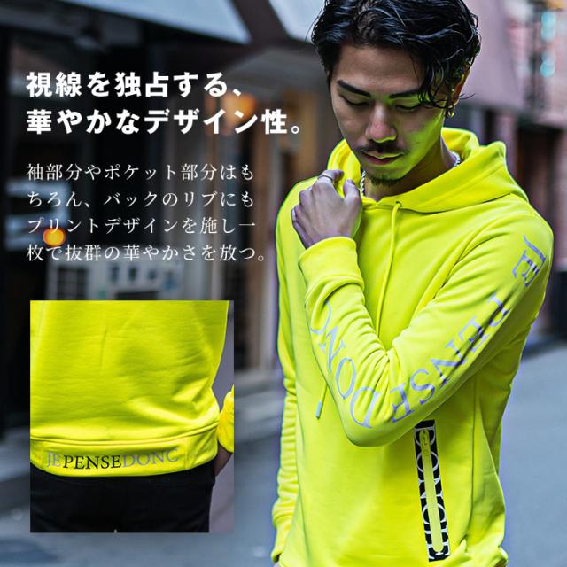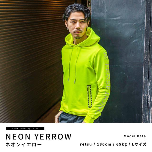 まばゆい存在感で魅せる 『ネオンパーカー』【ネオンパーカー】■Design/デザインまばゆいネオンカラーで存在感を放つ裏毛のプルオーバーパーカー。スリムなサイジングで体にフィットする細身シルエットが特徴。サイドのZIPポケットやバック部分の裾部分にロゴデザインを配置しさりげなくデザイン性を演出する。ネオンピンクとネオンイエローの2色展開で、遊び心を詰め込んだイケイケな派手色パーカー。■Material/素材感ポリエステル100%の使用でしなやかで軽やかな着用が可能。程よく伸縮性があるためストレス感のない着用が可能。