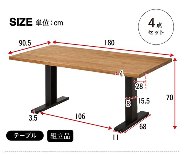 テーブル:W180 x D90.5 x H70cm