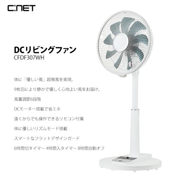 節電扇風機 シーネット DCリビングファン CFDF307WH DCモーター扇風機 省エネ 静音扇風機 節電扇風機 リビング扇風機 風量 6段階