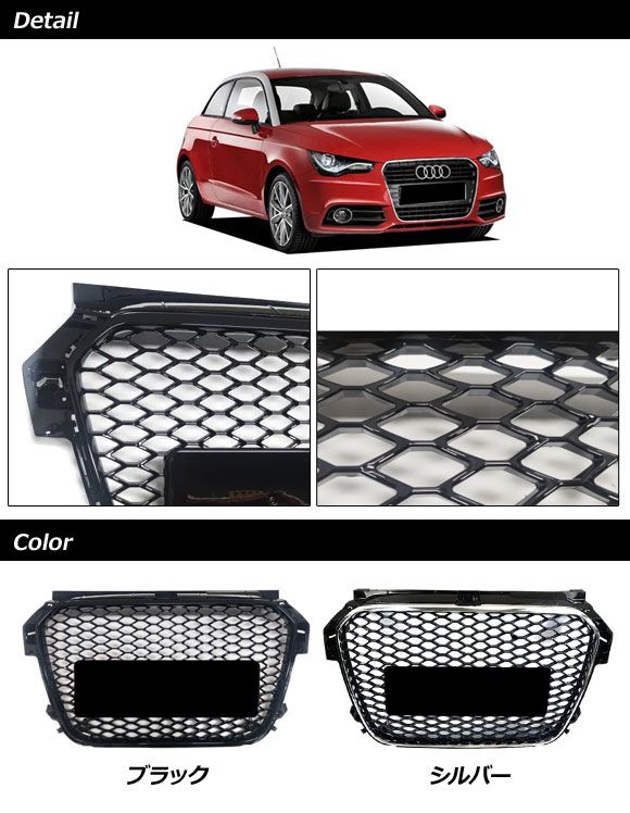フロントグリルカバー アウディ A1 8XCAX/8XCTH/8XCPT 前期 2011年01月〜2015年05月 シルバー ABS製 AP-FG581-SI