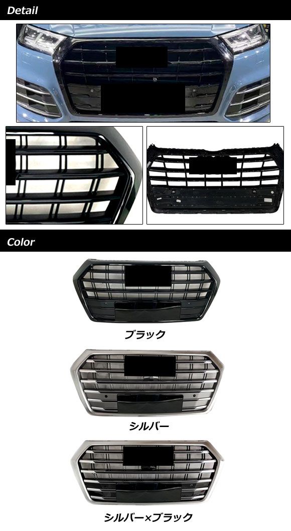 フロントグリルカバー アウディ Q5 FYDAXS/FYDAXA/FYDETS/FYDETA 前期 2017年10月〜2021年02月 ブラック ABS樹脂製 AP-FG574-BK