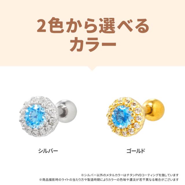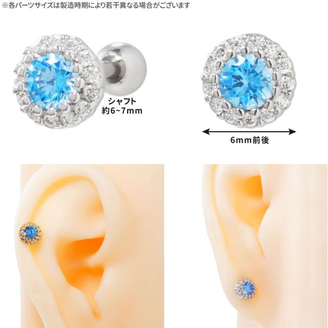 2個セット ブルー ストーン ビジュー ストレートバーベル 14G 16G 18G 20G サージカルステンレス ヘリックス 軟骨ピアス ボディピアス