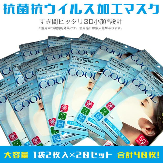 大容量 20セット 合計40枚 抗菌抗ウイルス加工マスク COOLマスク 花粉 ほこり 対策 3Dマスク 小顔マスク 洗濯OK ![]() ![]() | ||||