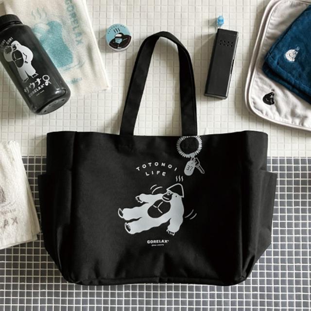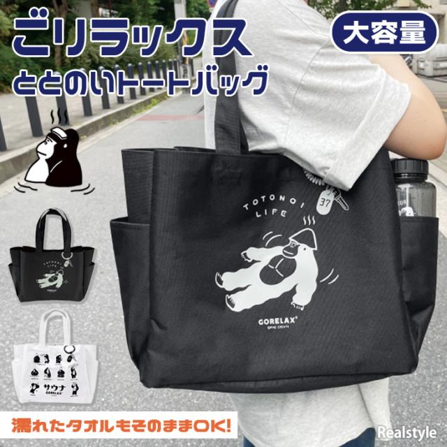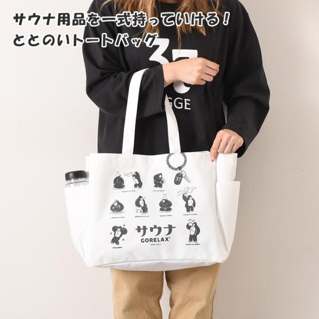 新作 トートバッグ ごリラックス GORELAX サウナ ととのい 大容量 a4 大きめ レディース メンズ マチあり おしゃれ 銭湯 温泉 ゴリラ アウトドア バスタオル 着替え ペットボトルホルダー 洗面用具