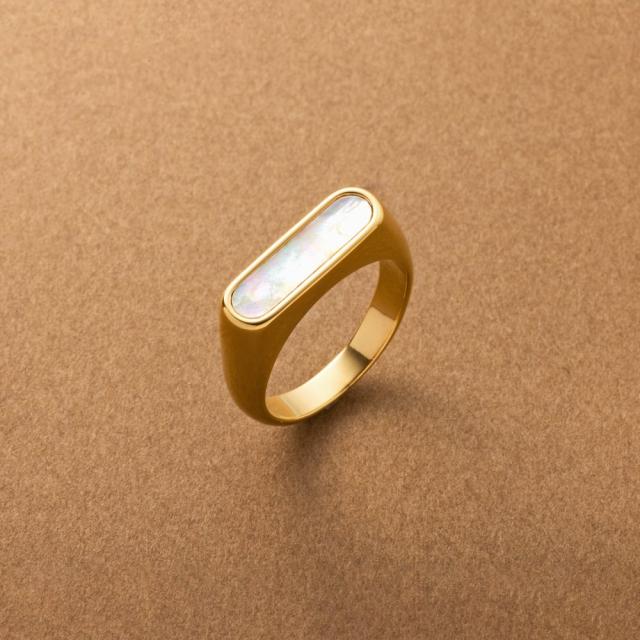 シェル/エポキシ樹脂を使用したシェイプリング。上品でシックなカラーが大人モードに仕上がるアイテムです。手元こなれたアクセントを添えてくれる、錆びにくいステンレス製でデイリーに活躍しそう。