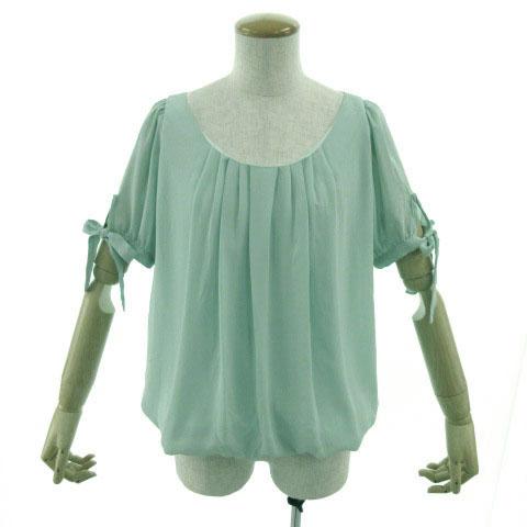 【中古】マーキュリーデュオ MERCURYDUO カットソー ギャザーネック 半袖 袖リボン グリーン系 ミントグリーン F