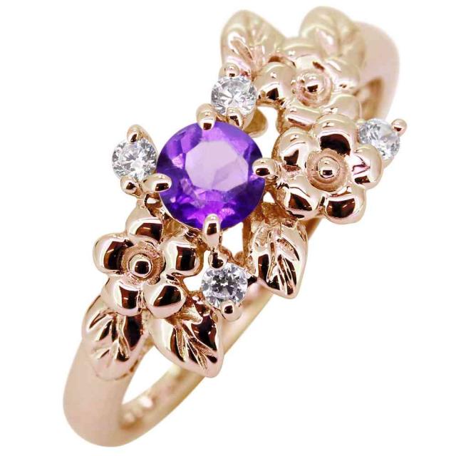 2月誕生石アメジストを使用した10金製の、フラワー(花)モチーフのレディースリング(指輪)です。