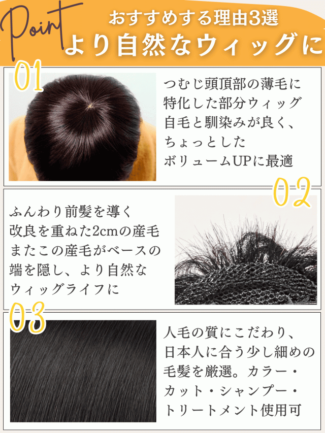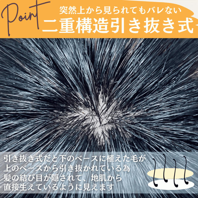 | 特徴2 | 植毛方法にもこだわり、二重構造&引き抜き式を採用。自然なO型つむじへ |