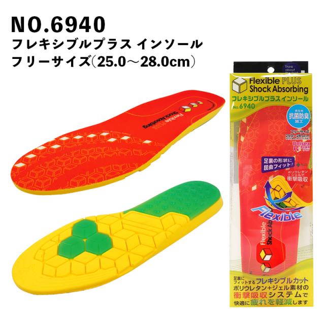 【喜多】フレキシブルインソール No.6940 フリーサイズ(25.0〜28.0cm)/ 衝撃吸収 / インソール / 抗菌防臭