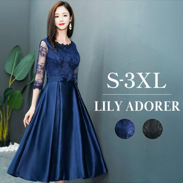 オケージョン ワンピース 結婚式 お呼ばれ 結婚式お呼ばれ ドレス 大きいサイズ ロングドレス パーティードレス 二次会 体型カバー ロング ミモレ丈 LILYADORER0095