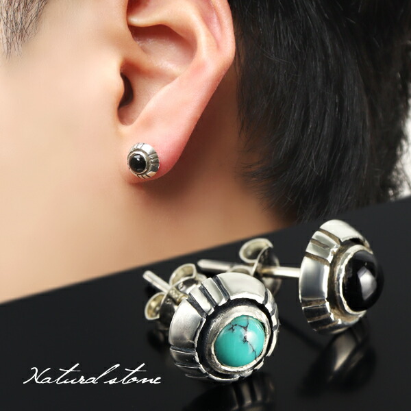 選べる2種類 ターコイズ オニキス スタッドピアス 1P 片耳用 シルバー925 ピアス スタッズピアス 一粒ピアス トルコ石 12月 誕生石 天然石