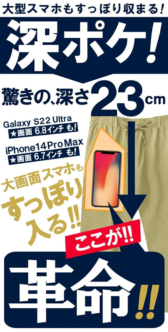 ・Lサイズ [ウェスト82〜92cm 前股上32cm 後股上37cm 股下65cm わたり幅30cm 裾幅19cm]