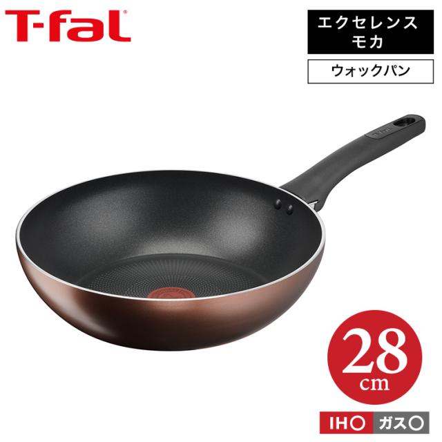 ティファール T-fal IHチタン・エクセレンス モカ ウォックパン 28cm G17219 IH対応 ガス火対応 中華鍋 深型フライパン 調理 お知らせマーク こびりつきにくさ 長持ち t-fal T-FAL tfal Tfal 誕生日プレゼント 送料無料
