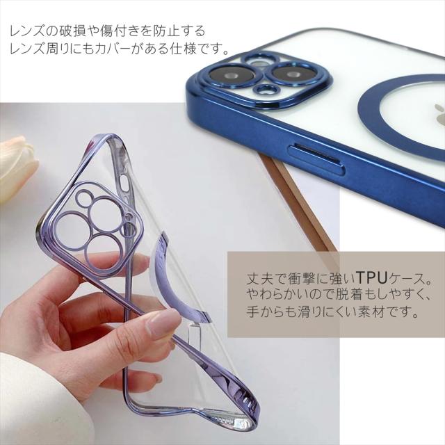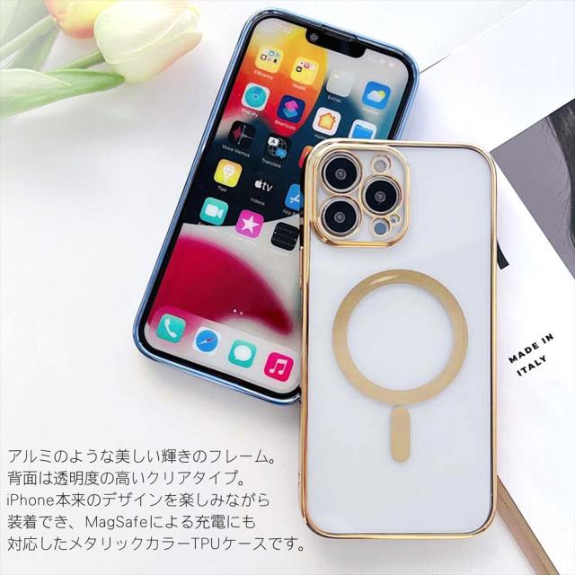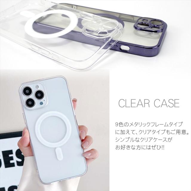 MagSafe対応 iPhone14 ケース クリア マグセーフ 14pro 14plus 14promax 透明 ケース magsafe 充電 メタリック メッキ加工 iPhone 14 カラー ソフトケース ソフト TPU 軽量 レンズ保護 カメラ保護 ストラップホール スマホケース カバー