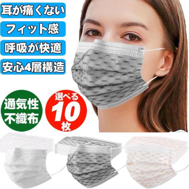 即納26年 新作 オールシーズン 不織布 血色 レース カラー マスク 10枚組 使い捨て 接触 柄 大人用マスク 成人 4層構造 男女兼用 花粉 飛沫 小さい 大きい